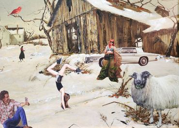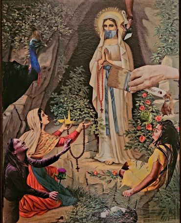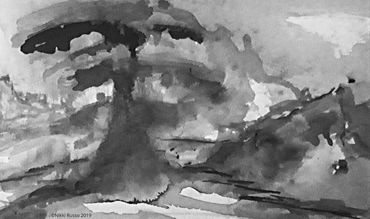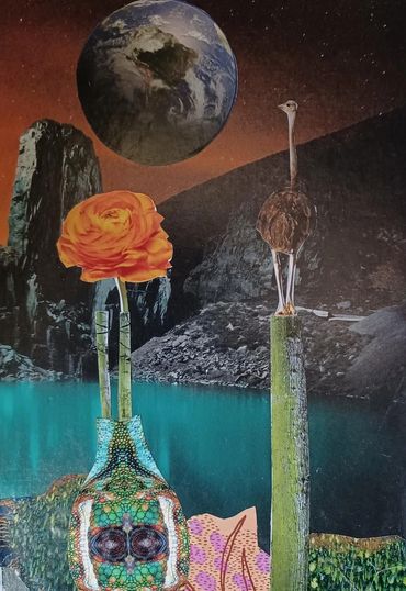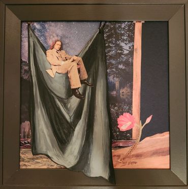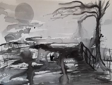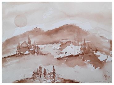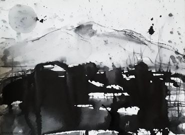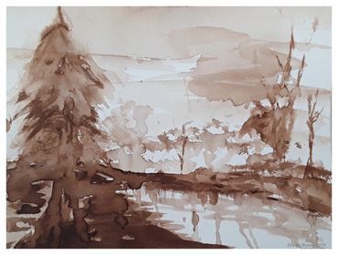 I create these small acrylic paintings on scrap cardboard, so as not to waste.